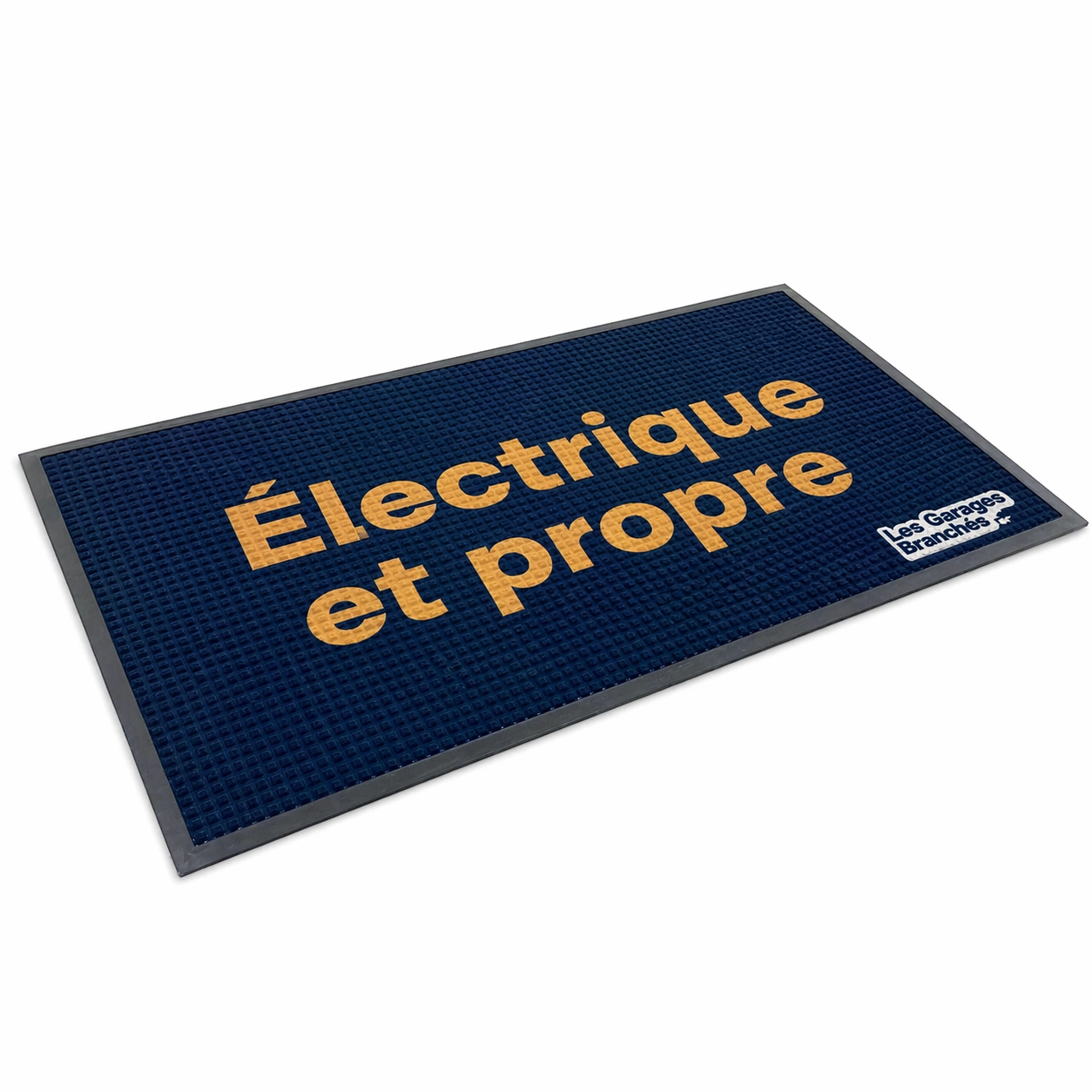 Le paillasson Revolte "Électrique et propre !" est l'accessoire idéal pour soigner l'accueil de vos clients, que ce soit à l'entrée de votre atelier de réparation ou de vos bureaux. Ce tapis haute densité combine fonctionnalité et message fort.